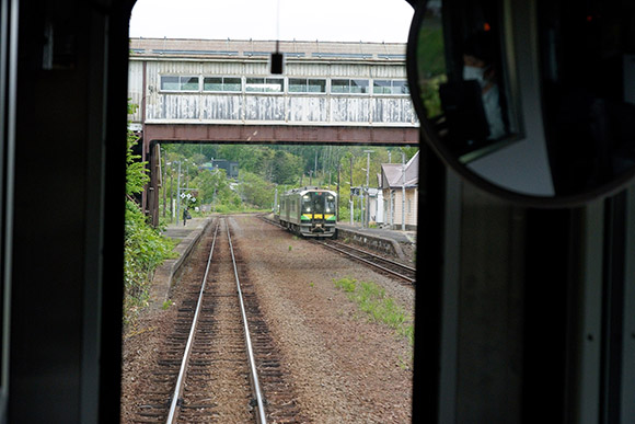 列車は2両編成で,普通列車倶知安行きです. 小樽を出る時点の混雑度は座席が埋まり,定員100%越えと見受けられます. シーズンでないからか観光客の姿はなく,ほとんどが交通弱者です. この状態が夜市まで続き,下校時刻と重なるからかその後も各駅で乗客が入れ替わります. それでも新幹線が開通したら廃止するのが北海道の方針のようで,何を考えているんでしょうね. ところで窓が少ない新車の室内は悪くないです. しかし振動と騒音がひどく,新車とは思えません.