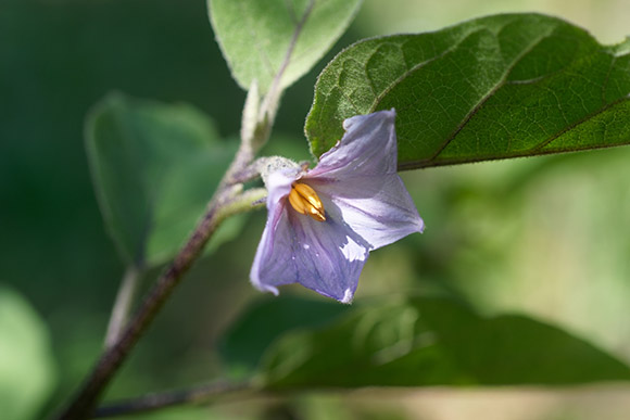 トマトもキュウリもスイカも落花生もみな黄色い花ですが,ナスだけは最初から紫色です. 肥料が不足するとカチカチの実を結び,石ナスと言われる失敗作となります. でも加熱調理すると歯ごたえがあり,悪くなかったです ↓ |
