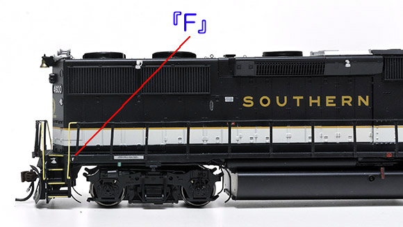 サザン鉄道の場合実は短い鼻は後で,『F』マークがある側が前だ. 踏み切り事故など乗務員の安全を確保するためだが,アメリカの鉄道組合は強力な発言力を持つケースが多い.
