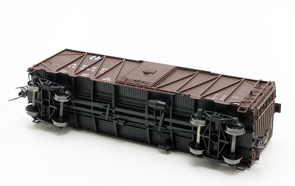 事故にでもならない限りこんなことにはなりませんが,良くできてます. アメリカでは昔の事故で谷底に転落した車両をそのまま放置し,通りかかったアムトラックの車内放送で解説することもありますが,レイアウトの谷底に配置するならこのモデルが適切です.