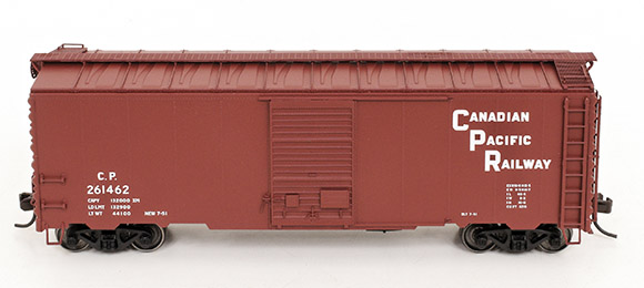 製品名はPOSTWAR BOX CAR. 直訳すると戦後型有蓋車だ. 長さは40フィート,扉は狭く見えるが,それでも1間(1.8メートル)ある. ちなみにウオークウエイと呼ばれる天井の歩行路は1967年の規定の改訂で不要となり,リフォームで外したり朽ちて消滅したり. しかし2001年の春にテハチャピで,歩行路付でパッチではないグレイトノーザン柄のボックスカーを見かけた.