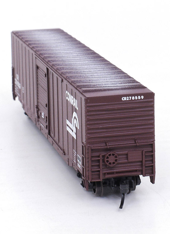 自動車のパーツを運ぶボックスカーで,比重が軽い荷物だからボディが大きい. 車輪踏面をみなければNスケールであることを感じないね.
