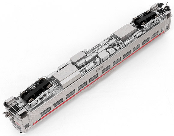 サザンパシフィック仕様の床の下です. 既リリース品同様,実車ではエンジンを配置する場所にモーターを配置し,前後の台車を駆動します.