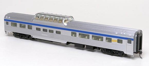 ウオルサーズの廉価シリーズのドーム付普通車です. インテリアの様子から察するところ,狭い方の客室はラウンジのようです. アメリカでラウンジと言うと,喫煙が許された部屋のことで,通常窓に背を向けて配置された椅子が備わります.