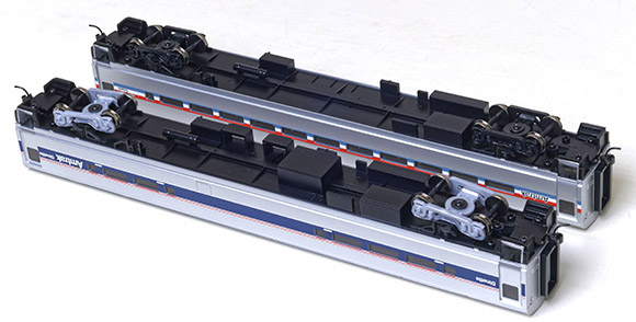 ラピードトレインズからも同一機種が販売されてますが20年の歴史があるウオルサーズ製はシンプルで,床下は必要十分な箱類が並んでいます. アムトラックでは心皿の上下で黒と銀に塗り分け,脱線した際の復旧作業に備えてますが,銀塗装は台車の亀裂の発見にも役立ちます. 日本でも台車の亀裂は日常ですから,見習うと良いです.
