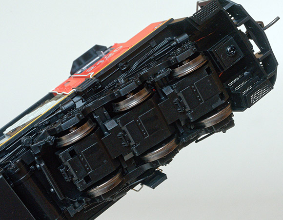 他社ではハイディテールモデルでもギヤーカバーはフラットですが,ラピードトレインズの場合モーターが表現されています. ギヤーカバーに表情を付けることはそれほど費用がかかるとは思えません. ラピードトレインズは良いところにきがつきました.