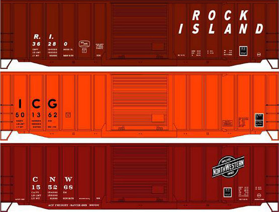 HO | ACC | 8188 | 50' EXTERIOR POST SINGLE DOOR BOX CAR (KIT; 3/pkg) | SET of (RI - ROCK ISLAND - brown , ICG - ILLINOIS CENTRAL GULF - orange, C&NW - brown) | $64.98 |
