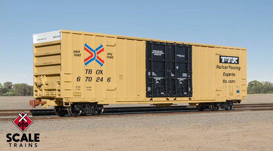HO | STC | SXT11888 | 60' TRINITY 7500 CuFt HIGH CUBE DOUBLE PLUG DOOR BOXCAR | RAILBOX / TTX 670246 (yellow, black door, red & blue logo, black TTX) | 7800円 | 195円/$ |