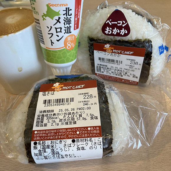 倶知安駅で友人と落ち合い,その番は洞爺湖のほとりの宿で飲み明かし,翌日は友人の新車を受け取りに余市の自動車ディーラーに向かうというスケジュールです. その後はニトリOB会が控えているので時短のためコンビニのおにぎりということになりました. コンビニとはいえ最高の素材と店内調理のセコマ(セイコーマート)のホットシェフブランドは,下手な食堂より満足できます. だから北海道のコンビニと言えば,セコマの一択です. 果汁たっぷりのセコマのメロンソフトやサロベツ牛乳は,海老名やいすみのスーパーでも人気アイテムです.