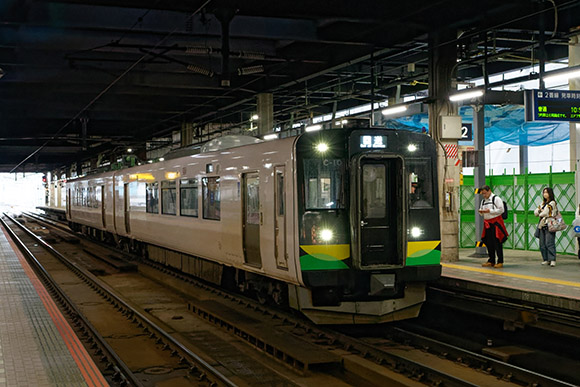 つぎはJRで小樽に向かいます. 列車を待っていると向かいのホームに初対面の電車がやってきました. 最近のJR北海道には次々新形電車が登場し,訳が判りません. 金欠だからこそサービスと節約ができる新車を導入し,金欠スパイラルから脱出して欲しいです.