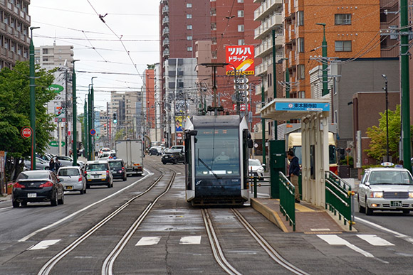 最終日も市電でスタートです. ステップレスの新型車は顔は同じでも単車と連節式があり,写真は単車の方です.