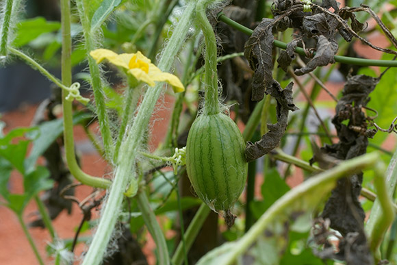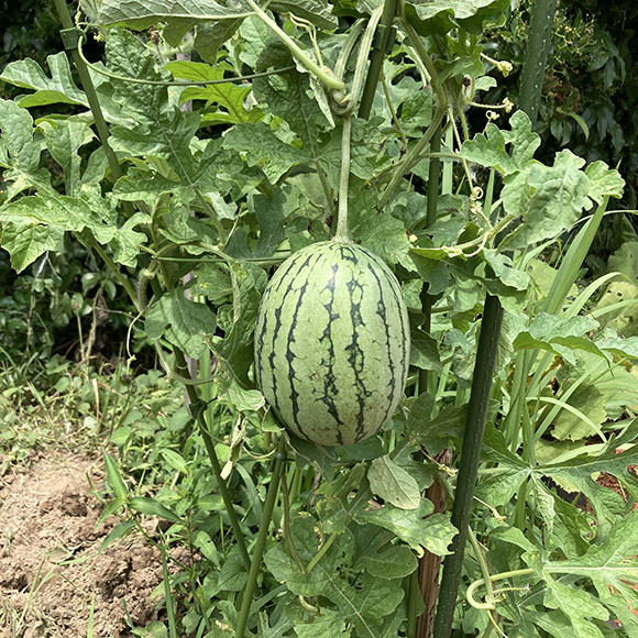 見た目スイカになりました. さあ出来たかなと思って収穫したら,中は白くて未完成でした. でも甘くて不思議な感じ ↓ |