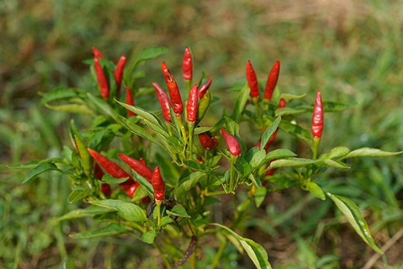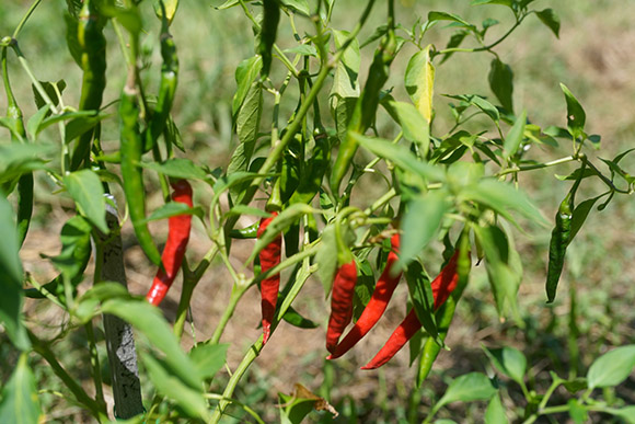 辛いものが好きなので,トウガラシもやってみました. 上を向いて実がついたのでビックリ ↓ |