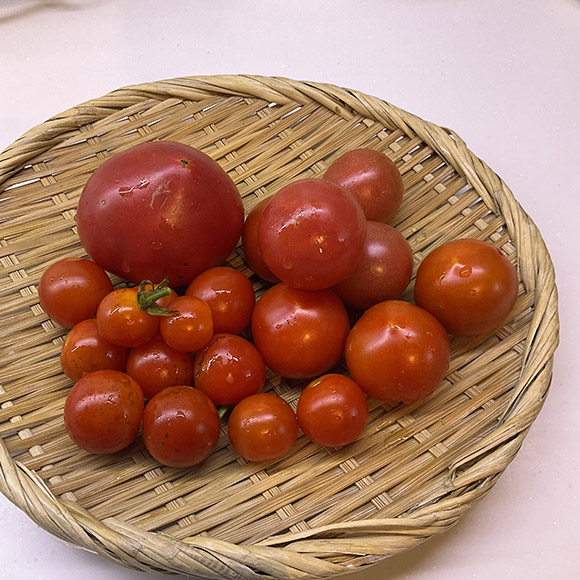 トマトは種類が多く,育てやすさや味覚が違いますので,来年は好みの苗に絞りたいと思います. 7月までは順調だったけど,8月からは虫害でずいぶんやられました. プロの農家じゃないから殺虫剤は使いません. そもそも虫たちの方が先住民なのだから,トマトでも何でも食べてください,ということです. それでも300円の苗で何十個収穫できたでしょう(?),コスパは最高です ↓ |