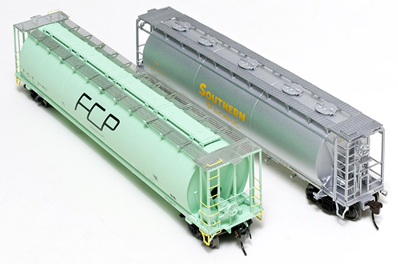 インターマウンテン(左)とアトラスのシリンドリカルホッパを比べてみた. もともと違う車型だが,ステンレスの歩行路など,価格なりの違いがある.