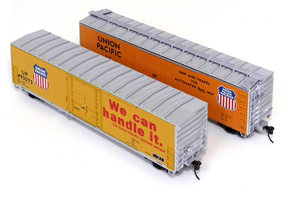 ボックスカーの外観上注意すべきことは,ルーフウオークと呼ばれる天井の歩行路の有無です. 天井歩行の頻度が少なくなった1960年代半ば以降に建造される車両からルーフウオークの備えが無くなり,駐車ブレーキハンドルの位置も低くなりました. ですからそれ以前の時代が特定できる車両との混成は注意が必要です. ちなみに上の2車種はともに品番910-で始まるウオルサーズの廉価版,メインラインシリーズです.