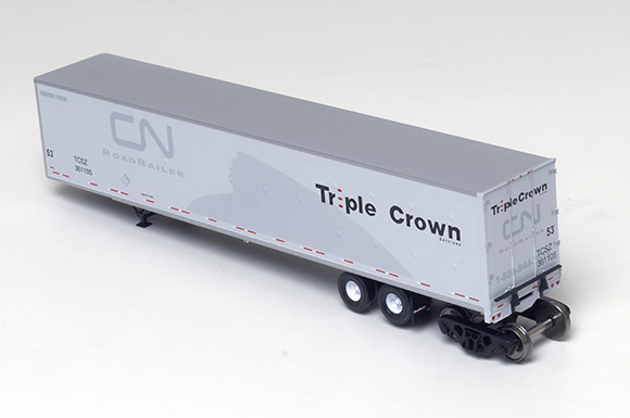 トレーラーに鉄道車輪を付けてレールを走らせるとは,良い考えです. 赤字続きのアムトラックが編成後部の連結器を活用しようと多量導入したが,連結と開放に時間がかかりすぎてダイヤを乱し,失敗に終わりました. 同様のことをカナディアンナショナルもやっていたようですが,今は専用列車を仕立てているケースがほとんどのようです.