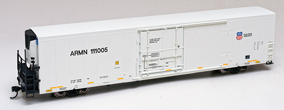 車端に冷却装置を備える72'の冷蔵車です. アメリカの鉄道はいい加減なので,荷主自らGPSで車両の位置を確認出来るつくりになってます.