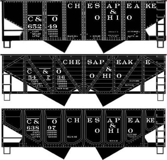 | HO | ACC | 8186 | 50t 2 BAY OFFSET SIDE HOPPER (KIT; 3/pkg) | C&O (black, white lettering) | $61.98 |