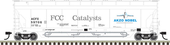 | N | ATL | 50007331 | ACF 4 BAY PRESSUREAIDE CENTER FLOW COVERED HOPPER | ACFX - AMERICAN CAR & FOUNDRY / AKZO NOBEL 51302 (white, blue logo, gray lettering) |