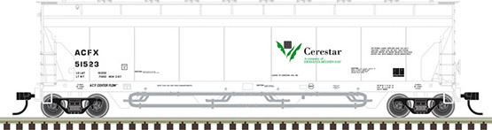 | N | ATL | 50007349 | ACF 4 BAY PRESSUREAIDE CENTER FLOW COVERED HOPPER | ACFX - AMERICAN CAR & FOUNDRY / CERESTAR 51523 (gray, green logo, black lettering) | $42.95 |
