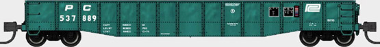 | N | BLF | 52295 | 52' 15 PANEL MILL GONDOLA (MEDIUM DENTED SIDES) | PC - PENN CENTRAL 537901 (jade, white logo & lettering) | $39.95 |