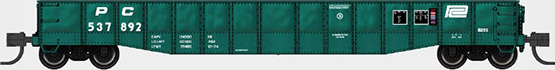 | N | BLF | 52294 | 52' 15 PANEL MILL GONDOLA (MEDIUM DENTED SIDES) | PC - PENN CENTRAL 537892 (jade, white logo & lettering) | $39.95 |