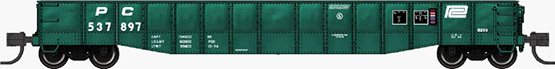 | N | BLF | 52297 | 52' 15 PANEL MILL GONDOLA (HEAVILY DENTED SIDES) | PC - PENN CENTRAL 537897 (jade, white logo & lettering) | $39.95 |