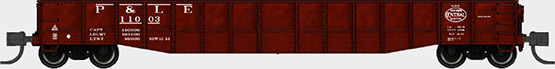 | N | BLF | 52304 | 52' 15 PANEL MILL GONDOLA (MEDIUM DENTED SIDES) | P&LE - PITTSBURGH & LAKE ERIE 11003 (brown, white oval herald & lettering) | $39.95 |