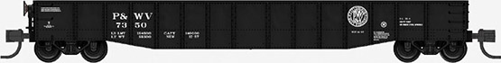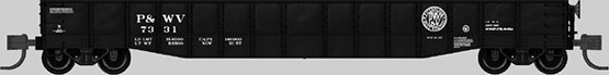 | N | BLF | 52314 | 52' 15 PANEL MILL GONDOLA (MEDIUM DENTED SIDES) | P&WV - PITTSBURGH & WEST VIRGINIA 7392 (black, white logo & lettering) | $39.95 |