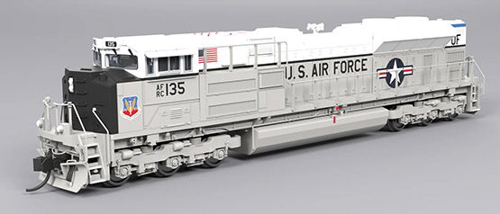 | N | BLI | 9985 | SD70ACe (STEALTH) | US AIR FORCE 135 (FANTASY, FLAG; gray, white top, black nose & lettering) | $199.99 |