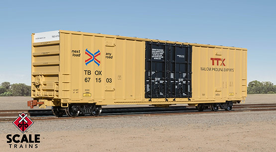 HO | STC | SXT11890 | 60' TRINITY 7500 CuFt HIGH CUBE DOUBLE PLUG DOOR BOXCAR | RAILBOX / TTX 670303 (yellow, black door, red & blue logo, black TTX) | 7800円 | 195円/$ |