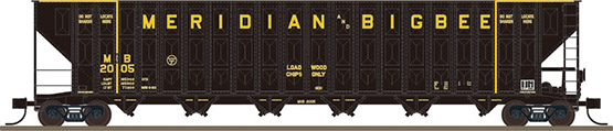 | N | TRW | 2705802 | 73' GREENVILLE 7000 CuFt WOOD CHIP HOPPER | M&B - MERIDIAN & BIGBEE RR #2 (black, yellow lettering) | $39.95 |