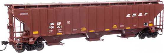| HO | WAL | 910-49029 | 57' TRINITY 4750 CuFt 18 RIB 3 BAY COVERED HOPPER | BNSF 466201 (WEDGE; brown, white logo & lettering) |