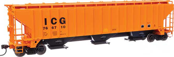 | HO | WAL | 910-49043 | 57' TRINITY 4750 CuFt 18 RIB 3 BAY COVERED HOPPER | ICG - ILLINOIS CENTRAL GULF 766833 (red, white logo & lettering) | $34.98 |