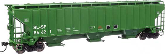| HO | WAL | 910-49050 | 57' TRINITY 4750 CuFt 18 RIB 3 BAY COVERED HOPPER | SLSF - FRISCO 86659 (green, white lettering) | $34.98 |