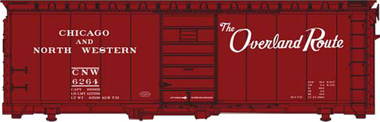 | HO | WAL | 910-45508 | 40' PS1 SINGLE DOOR BOX CAR | C&NW 6275 (OVERLAND ROUTE; brown, white logo & lettering) | $38.98 |