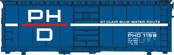 | HO | WAL | 910-45515 | 40' PS1 SINGLE DOOR BOX CAR | PHD - PORT HURON & DETROIT 1158 (blue, red bar, white stripe & lettering) | $38.98 |