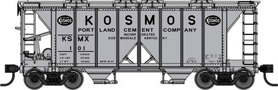 | HO | WAL | 910-49720 | ACF 1958 CuFt 2 BAY OPENSIDE COVERED HOPPER | KSMX - KOSMOS CEMENT 101 (gray, black logo,& lettering) | $38.98 |