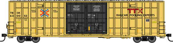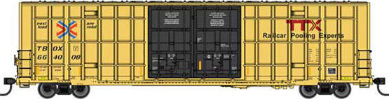 | HO | WAL | 910-3120 | 60' HI CUBE PLATE F DOUBLE DOOR BOX CAR | TTX TBOX 630401 (HIGH LETTERING; yellow, blue & red logo, red TTX, black doors & lettering) | $38.98 |