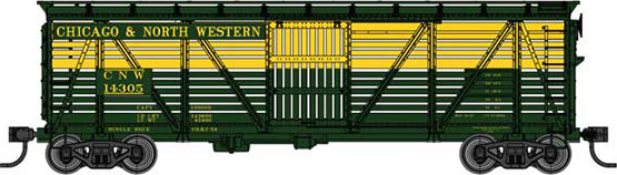| HO | WAL | 910-41510 | 40' STOCK CAR w/DREADNAUGHT ENDS | C&NW 14382 (green, yellow, yellow lettering) | $39.98 |